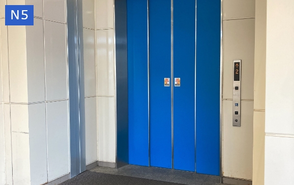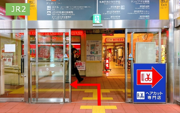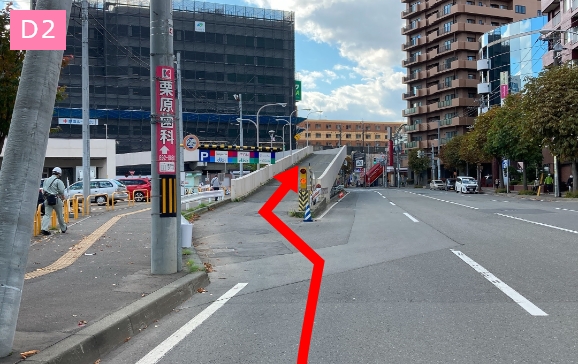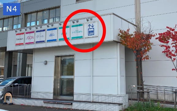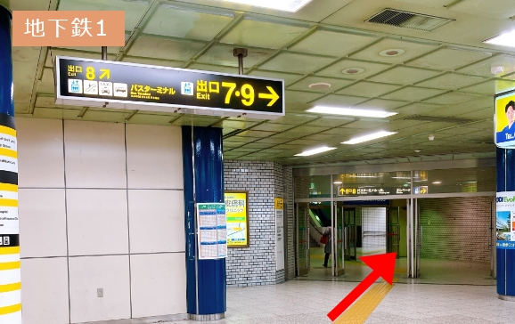 ご送迎は、右の写真、地下鉄8番出口のブリッジ下に車をお付けいただき、エスカレーターで2階までお上がりください。